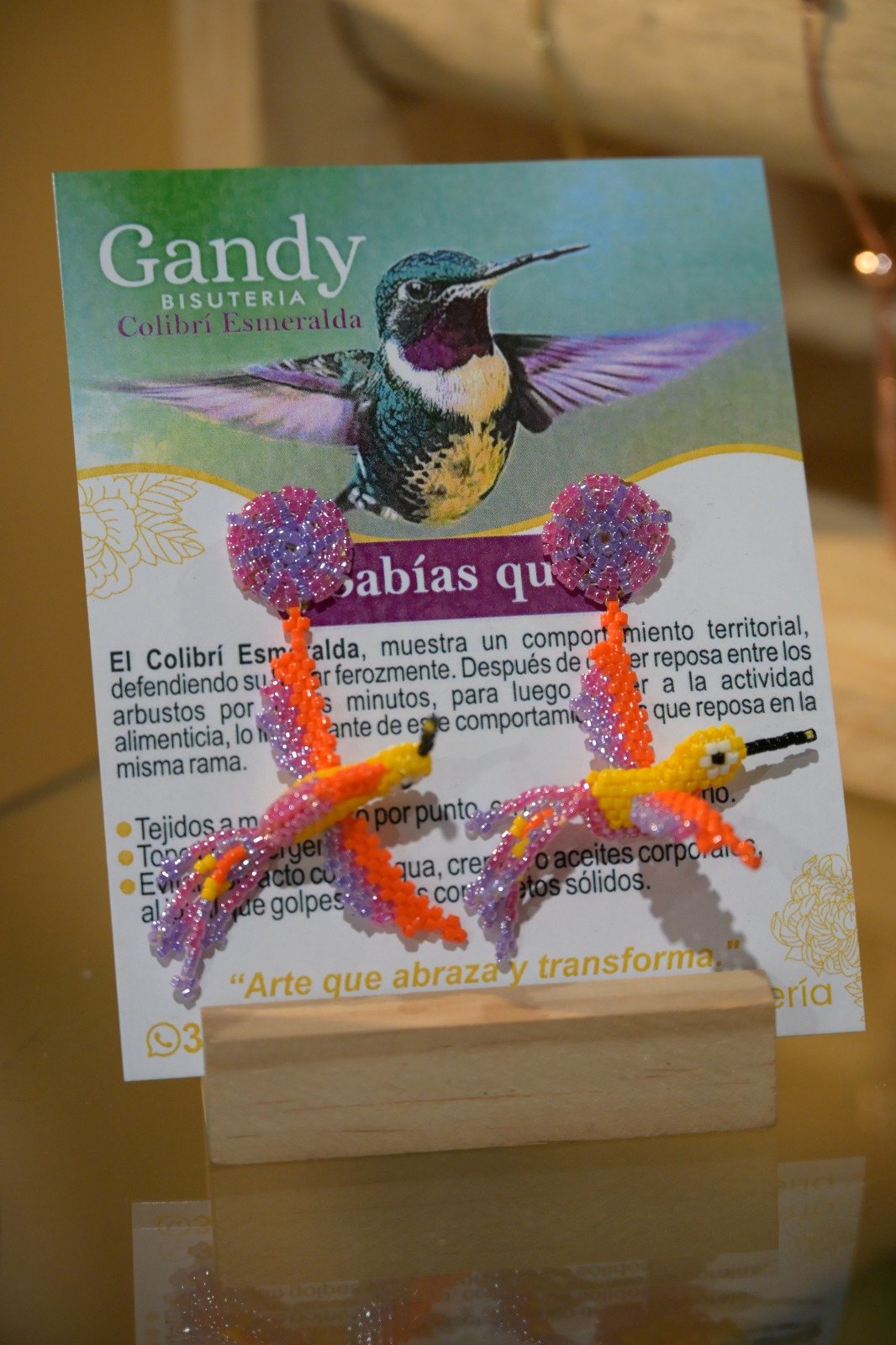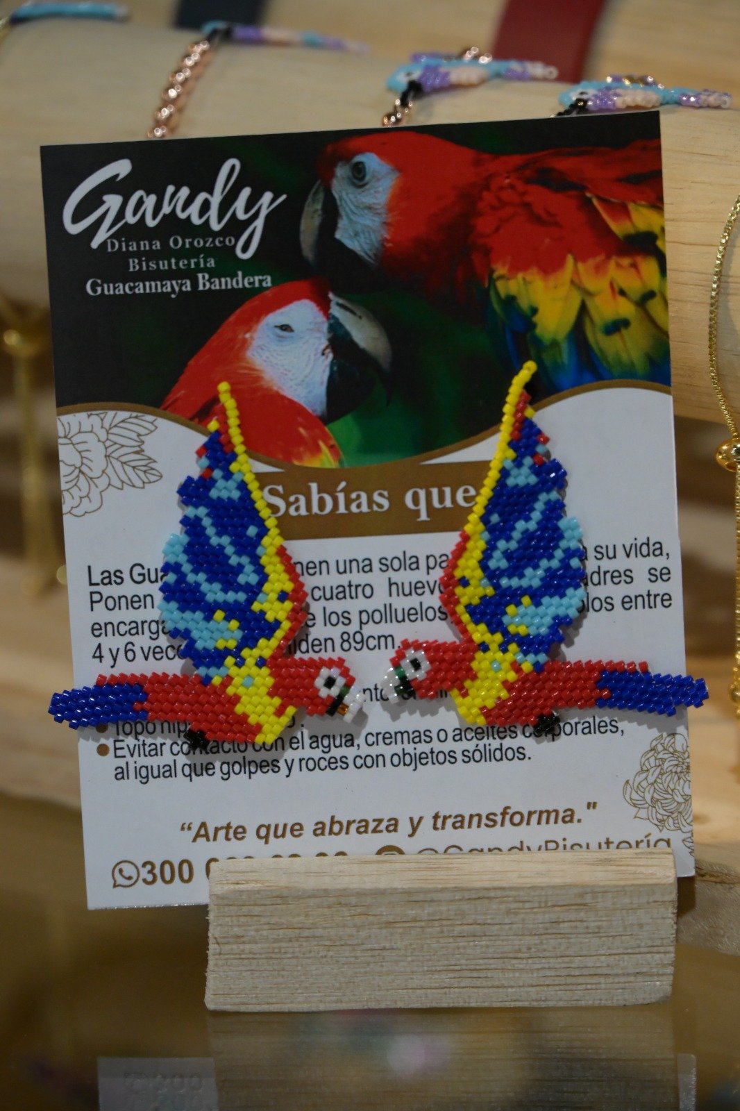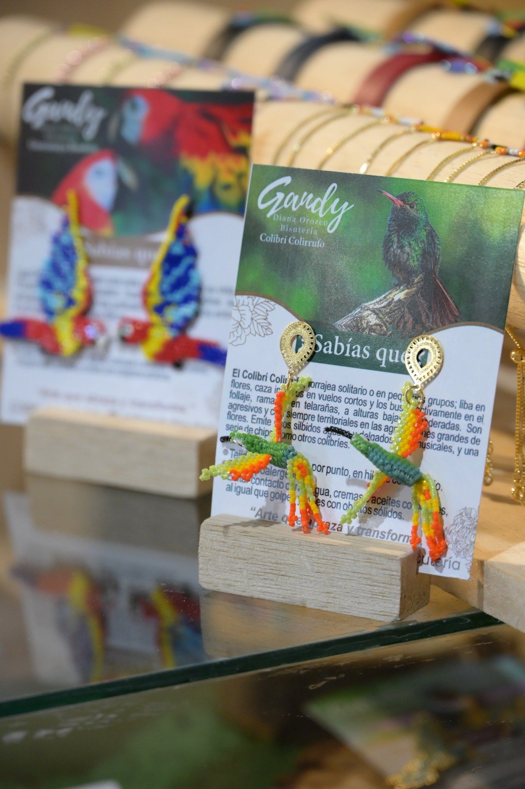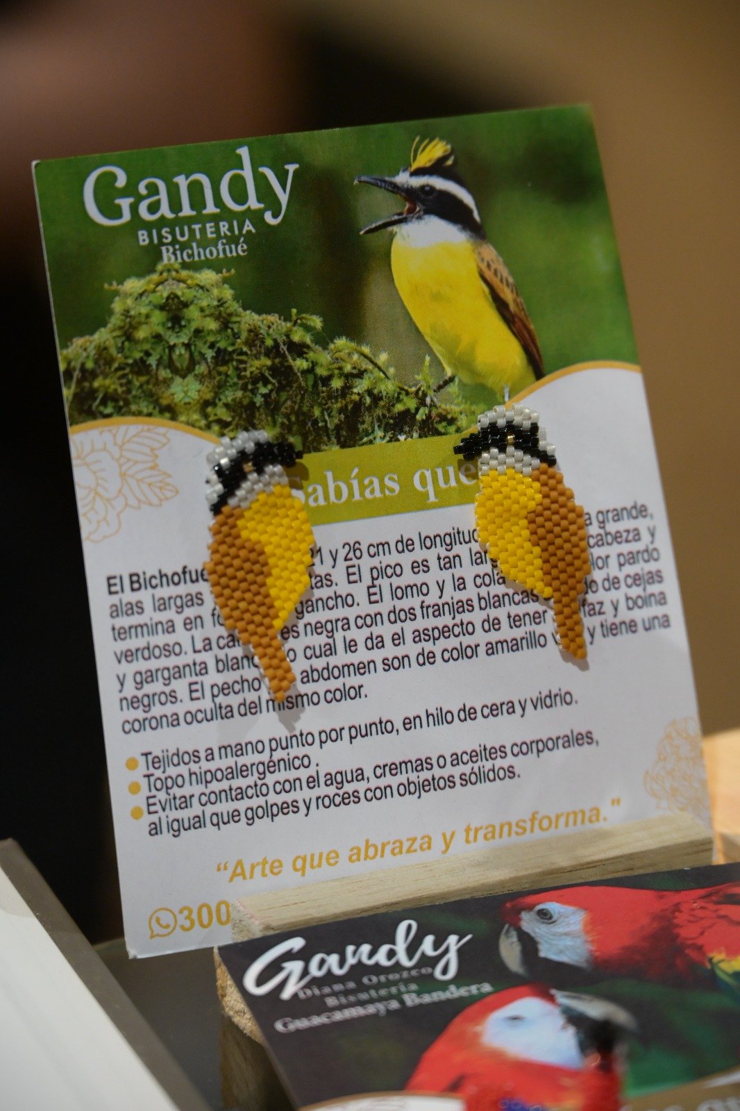 En esta edición, Gandy presentará una curaduría especial titulada “Aves de Antioquia”, una colección de piezas tejidas en mostacilla Miyuki, donde cada ave representa no solo la riqueza natural de nuestro territorio, sino también un proceso de creación consciente, paciente y sanador. Algunas piezas incorporan volumen a través de la técnica Peyote 3D, mientras otras mantienen un lenguaje plano y delicado, resaltando el detalle y la precisión del tejido artesanal.