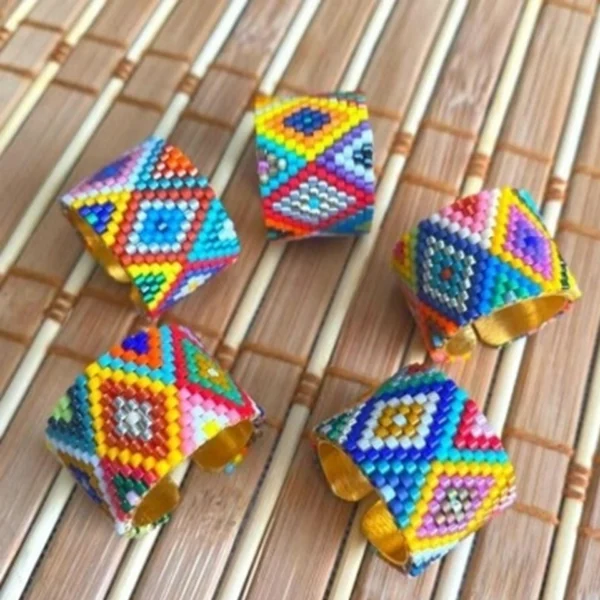 Presentamos el Anillo Tuty Rombo Peyote en Miyuki, una pieza única de joyería que combina estilo y sofisticación en un diseño atemporal. Este anillo es la expresión perfecta de la artesanía y el amor por los detalles, ideal para quienes buscan complementar su outfit con un toque distintivo.